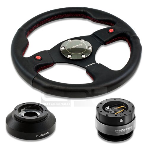 Features100% brand new, Never Been Tried or Installed12.5" / 320mm Black Leather Red Stitching with Dual Button; ST-007RShort Hub Adapter; Direct Bolt-on Design, Perfectly fits Any Wheel with a 6-Bolt Standard Design; SRK-E30H. Please go to the NRG Website for Detail Application of the Hub AdapterNRG Brand Quick Release Generation 2.0; Ball Bearing Mechanism; SRK-200BKWill Require the Removal of Special Features from OEM Steering Wheel Such As Cruise Control and Air Bag NRG-SRK-E30H+007R+200BK, NRG Innovations 12.5" 320mm Black Leather Red Stitch Dual Horn Button Racing Steering Wheel Combo with 6 Hole Short Hub Adapter with Gen 2.0 Black Quick Release Kit SRK-E30H?