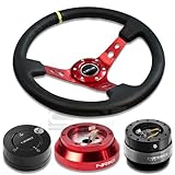 NRGSRK140HRD+200BK+101MB+006RDY, NRG Innovations 13.78" 350mm 3" Deep Dish Style Black Leather Yellow Center Marking Red Spokes Racing Steering Wheel Combo with 6 Hole Short Hub Adapter with Gen 2.0 Black Quick Release with Matte Black Lock Hub Kit SRK-140H